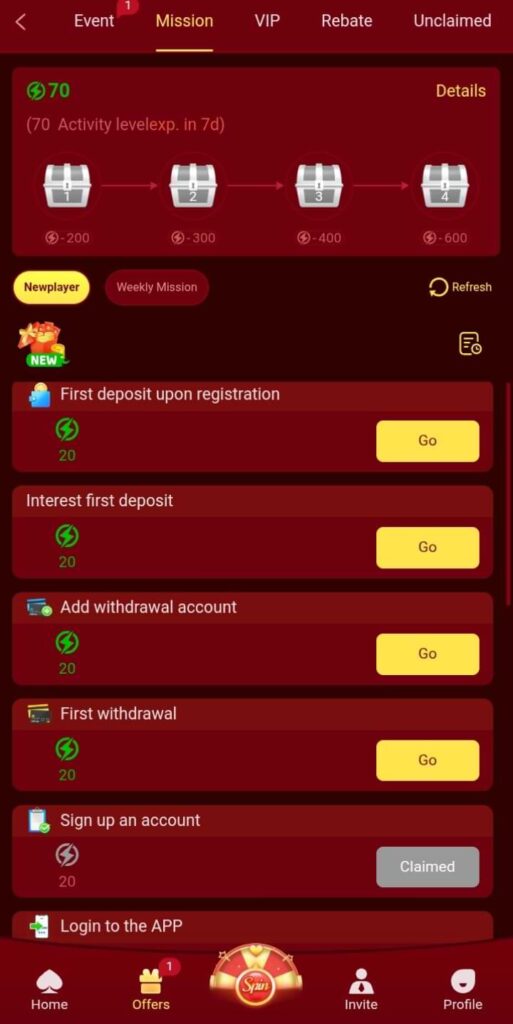 - Players can get 10% on their overall lose as remedy bonus.